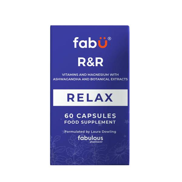 fabÜ R&R RELAX is a unique supplement with 8 active ingredients. R&R RELAX is a beautiful blend of the ayurvedic herb, Ashwagandha and botanical extracts of Melissa, L-Theanine from green tea and chamomile.
